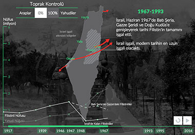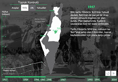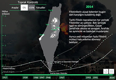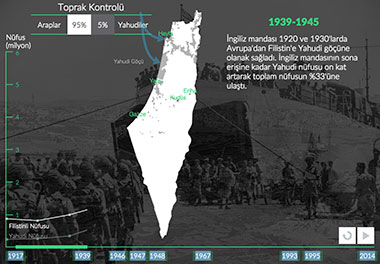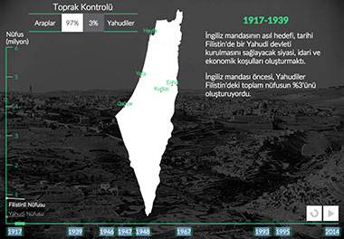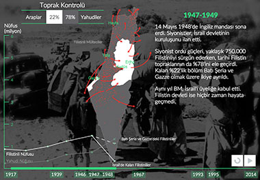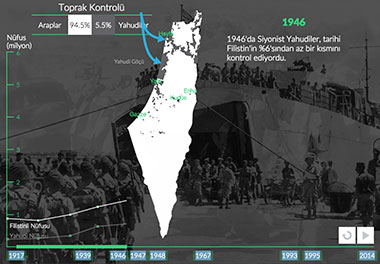 Filistin'in bir Yahudi devletine dönüşmesi, planlı, uzun ve şiddet dolu bir süreçti. Filistinlilere ait topraklara el konuldu. 1948'de İsrail'in kurulmasıyla Filistinlilerin %80'inden fazlası bir gecede mülteci konumuna düştü. 20. yüzyılın başında başlayan ve 1948'de zirveye noktasına ulaşan süreç, bugün de hala devam ediyor.
